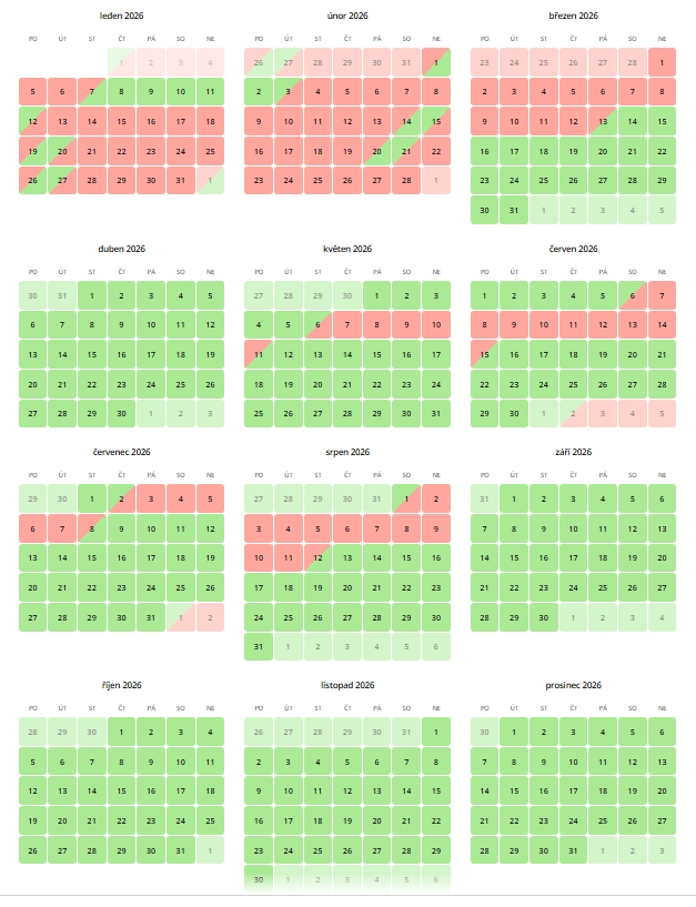 Kalendář obsazenosti apartmánu (pro aktuální stav prosím klikněte na obrázek):